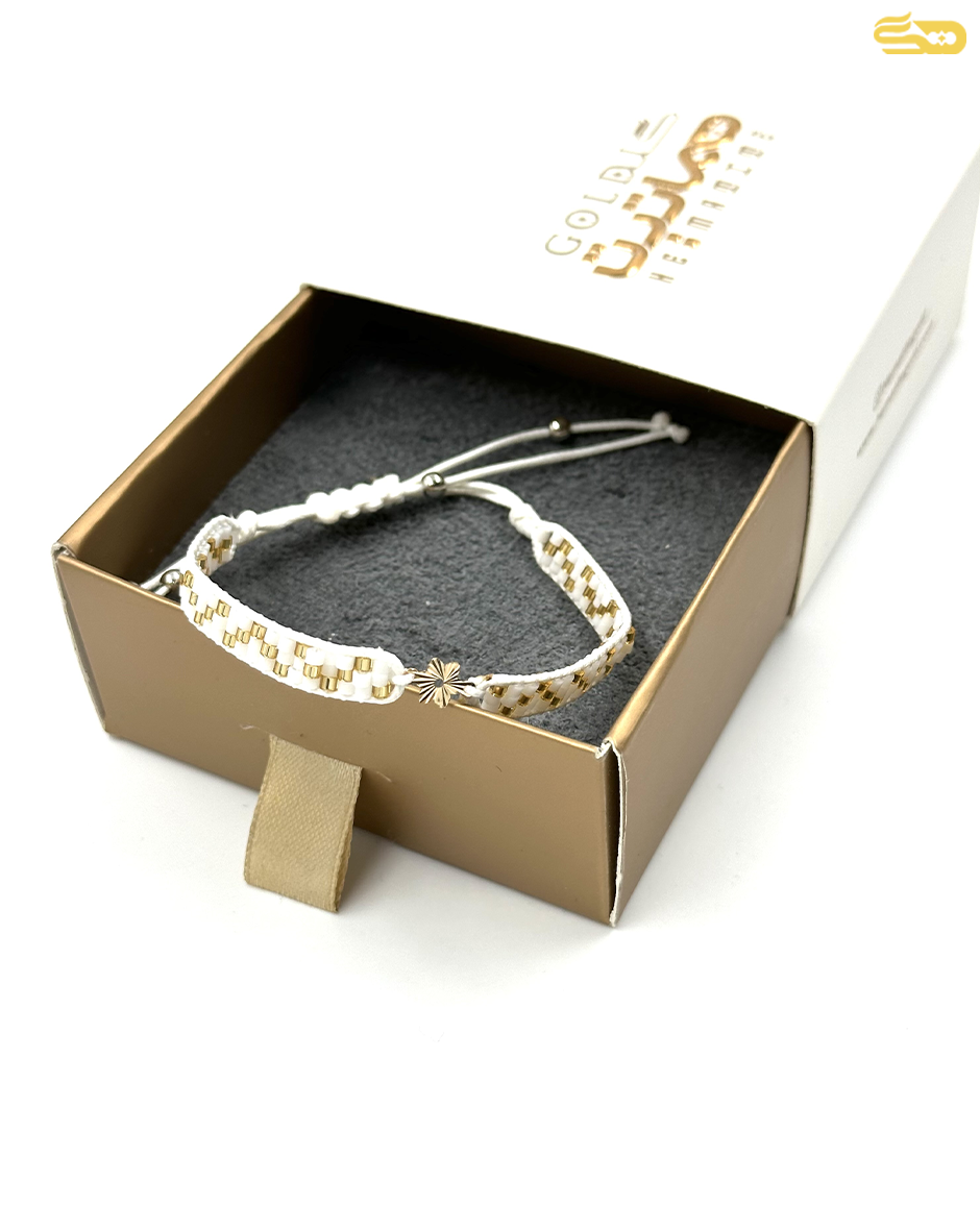 رنگ طلایی گرم این دستبند با استفاده از ترکیب فلز گرانبهای طلا و دوخت ظریف بند، جلوهای ماندگار و دلنشین ایجاد کرده است. همین ویژگی سبب میشود که هم برای استایل روزمره و هم در جشنها و مهمانیها اکسسوری محبوب شما باشد. این دستبند مناسب همه سلیقههاست و به لطف قابلیت تنظیم اندازه، به راحتی بر روی مچ دست قرار میگیرد و برای هدیه دادن نیز انتخابی ایدهآل به حساب میآید.