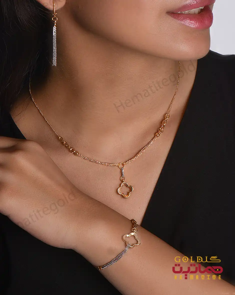 سرویس حوا شقایق به همراه گردنبند ، دستبند و گوشواره را با بهترین قیمت و بالاترین کیفیت از فروشگاه آنلاین هماتیت گلد به صورت قسطی خریداری کنید