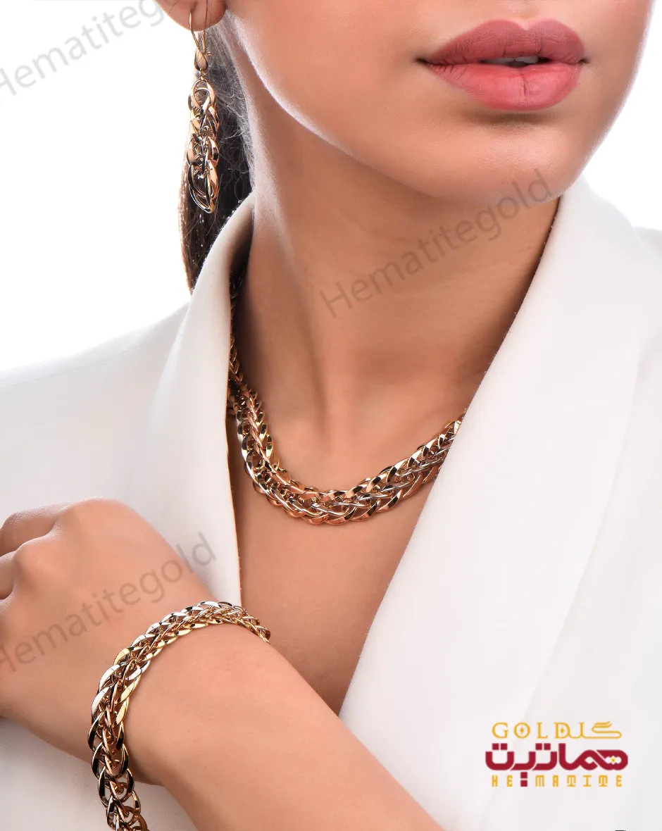 سرویس طلای شانل به همراه گردنبند ، دستبند و گوشواره را با بهترین قیمت و بالاترین کیفیت از فروشگاه آنلاین هماتیت گلد به صورت قسطی خریداری کنید