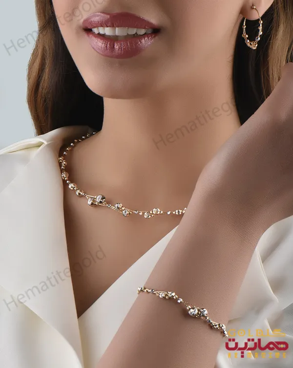 سرویس تیفانی نیلا شامل گردنبند، گوشواره و دستبند با طراحی زیبا در هماتیت گلد