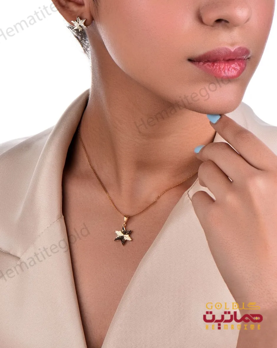 نیم ست یاسمین ویدا به همراه گردنبند و گوشواره را با بهترین قیمت و بالاترین کیفیت از فروشگاه آنلاین هماتیت گلد به صورت قسطی خریداری کنید